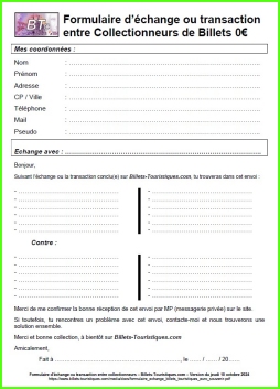Afin de concrétiser un échange ou une transaction entre collectionneurs, nous vous conseillons d'utiliser ce formulaire normalisé :